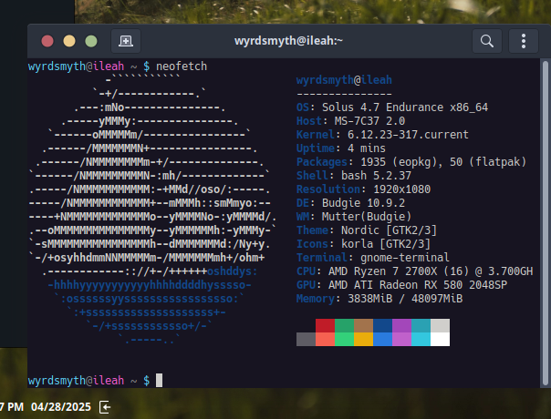 I've got an off-brand Radeon RX 580 in my custom desktop computer that has started acting up over the past few months. I'm trying to make a determination on whether the issue is hardware, and if it is whether the issue is at the motherboard or the video card. I've been running the same installation of Solus (with every update) since 2021, if that matters. I am using the default Radeon driver, but previously I had an nVidia card installed and was using the proprietary drivers for that card.