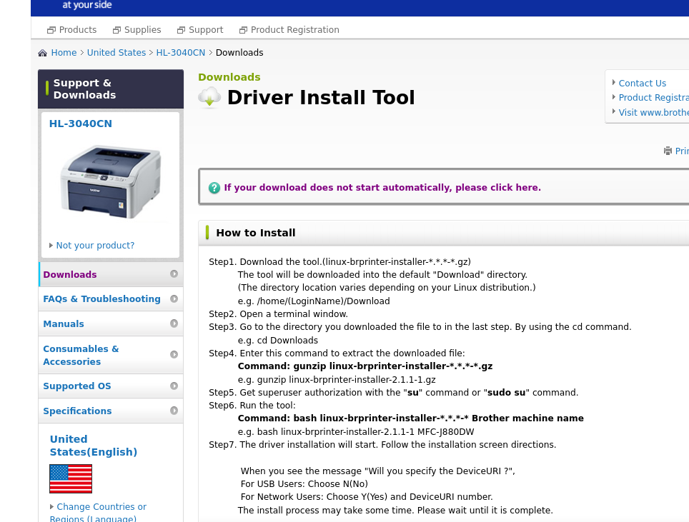 if Brother Website has a linux driver in a tarball you can use the cli to install that as well