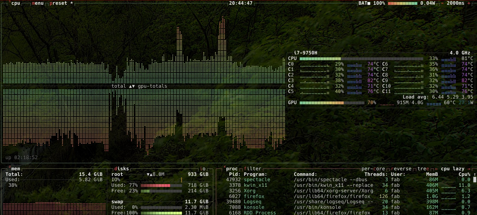 3534 fab 20 0 3148004 413604 281132 S 466,4 2,6 244:54.86 kwin_x11