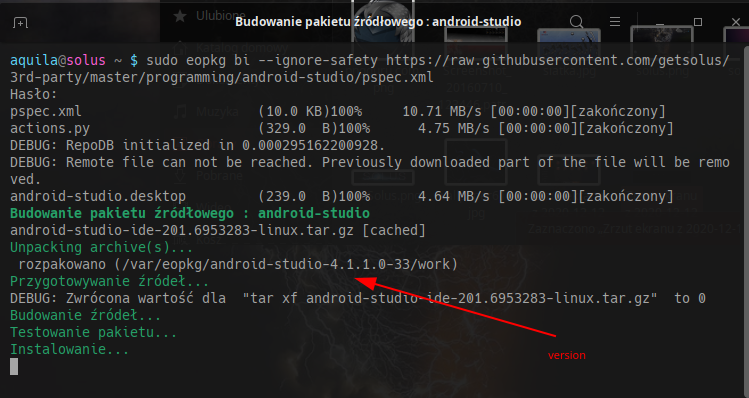 pomon You can try like this: sudo eopkg bi --ignore-safety https://raw.githubusercontent.com/getsolus/3rd-party/master/programming/android-studio/pspec.xml sudo eopkg it android-studio*.eopkg;sudo rm android-studio*.eopkg